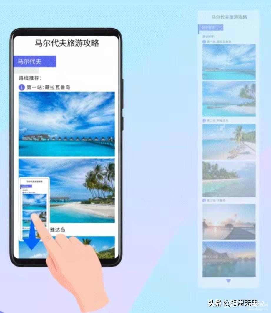 在用其它方式截屏后,立即下滑左下角截屏小图,可快速获得滚动长截图。