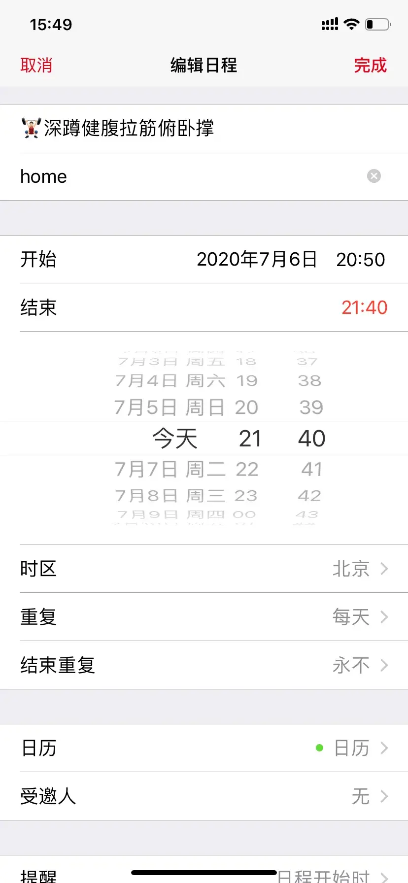 苹果自带日历设置事件时间默认给出的时间间隔是5分钟,那如果用户想将事件时间具体到每一分钟该怎么办呢?