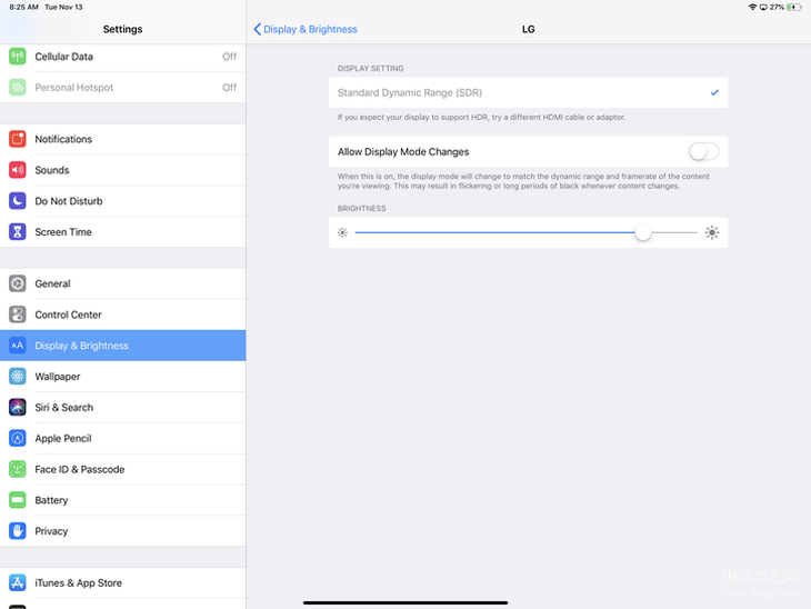 如果你发现在显示器或电视上显示的输出质量存在问题,可打开“设置” >“ 显示和亮度”,然后选择当前连接的显示。用户可以调整外接显示器的亮度,并定制iPad Pro的输出。