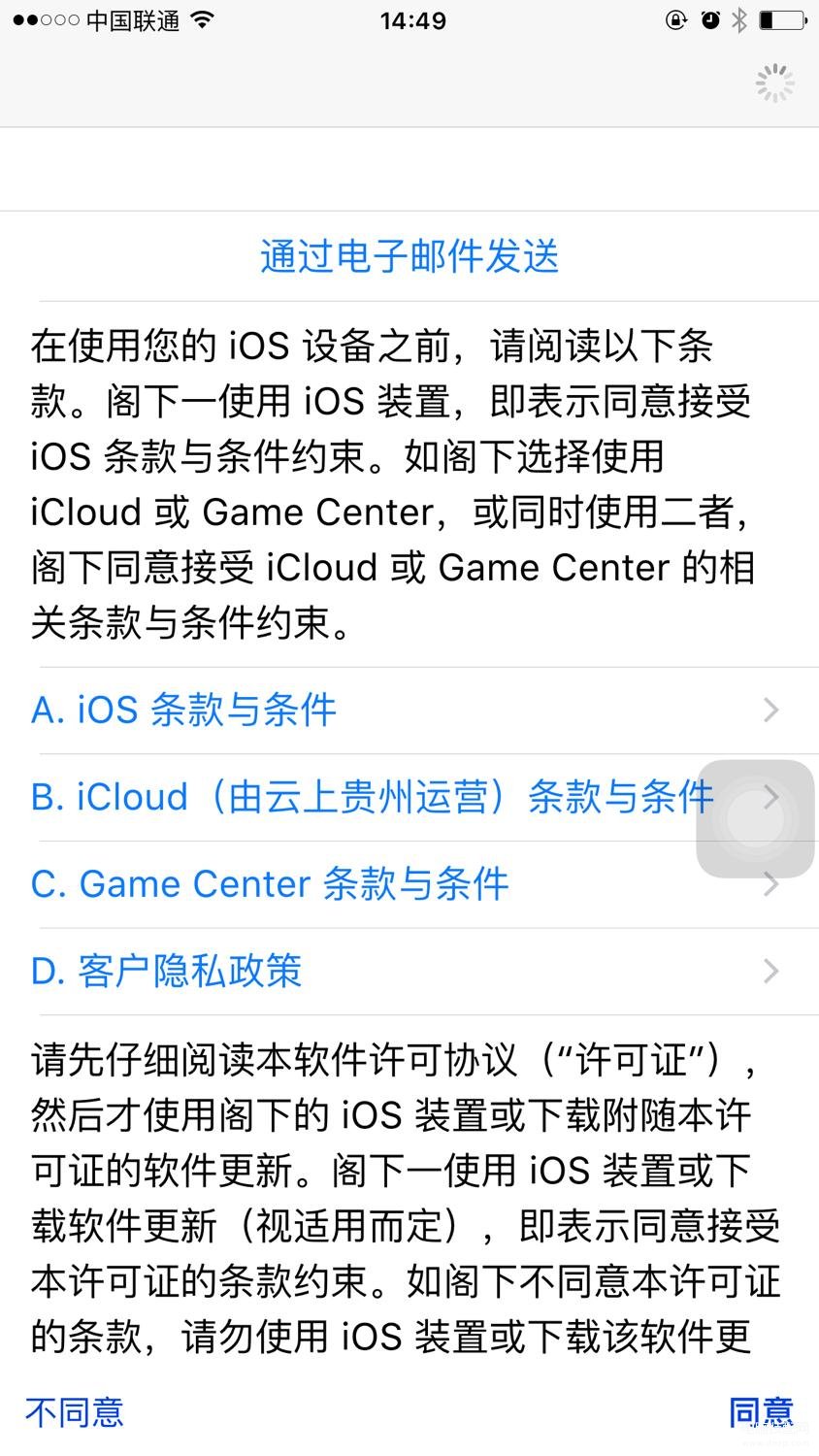 点击同意并等待一会儿,在这个过程中间一定要保证网络的畅通,这个步骤需要网络和苹果服务器建立连接.