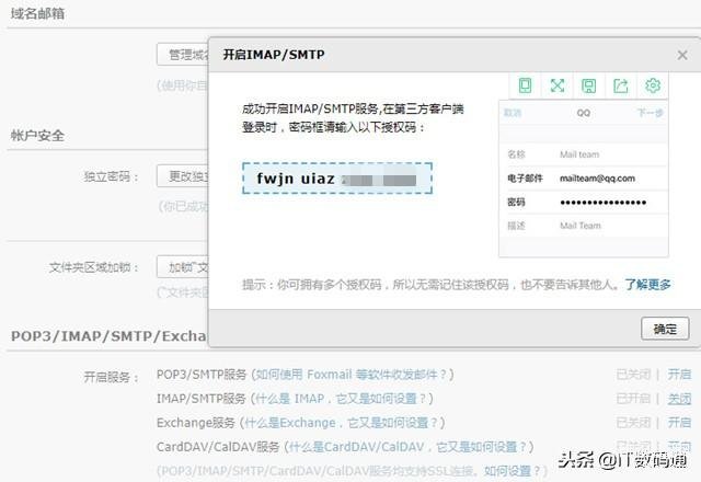 四、接下来邮箱会收到一个授权码,这个需要我们复制去粘贴下来,保持,等会需要用到。