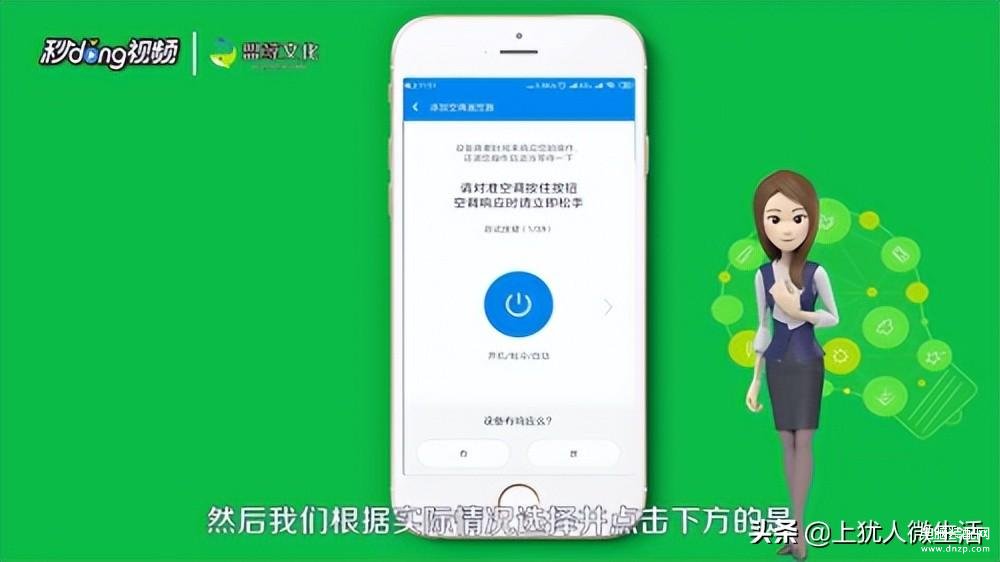 之后选择并点击空调品牌,长按“开机”按钮,根据实际情况选择并点击下方的“是”。