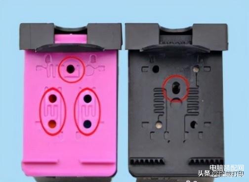 - 彩色墨盒不同的孔位对应的是不同的颜色,千万不可以混加。小绘建议加墨之前可以先拿一根牙签进行试色。黑色墨盒的孔位对应的都是黑色,加哪个孔都可以。