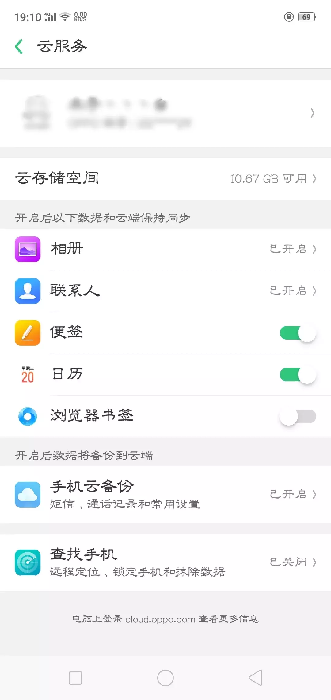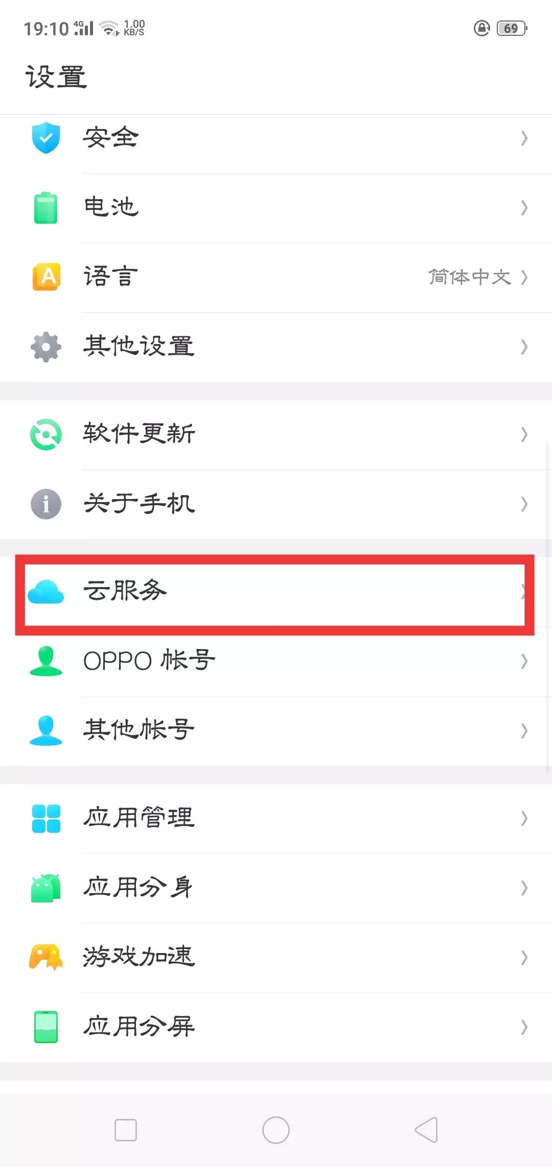 进入设置—云服务—登录OPPO账号—点击需要备份的项目进行备份;