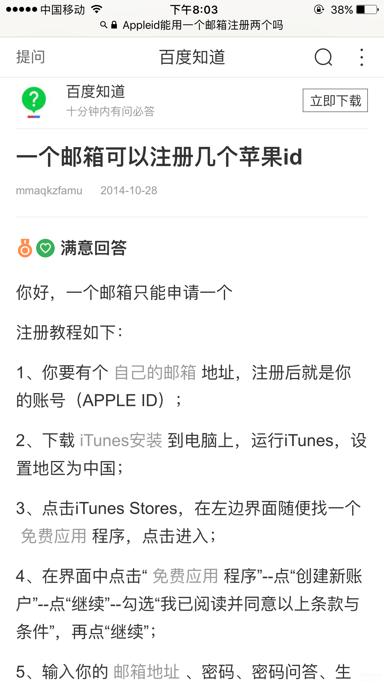 如果现在百度查一个邮箱能注册两个AppleID吗?搜出来的结果出奇的一致,全都是不能。