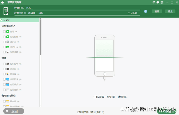 第2步:扫描数据的阶段以后,请不要频繁的使用手机,避免连接断开导致扫描的中断;