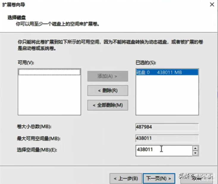 然后点下一步,这里的默认容量,就是你未分配磁盘中所有的容量。