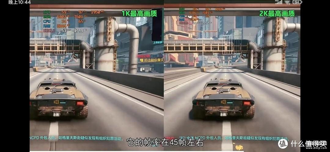 赛博朋克在1080P最高画质下,FPS大约是53,而在2K最高画质下,FPS大约是44左右,稍微降低一点画质,保持在60帧以上没问题。
