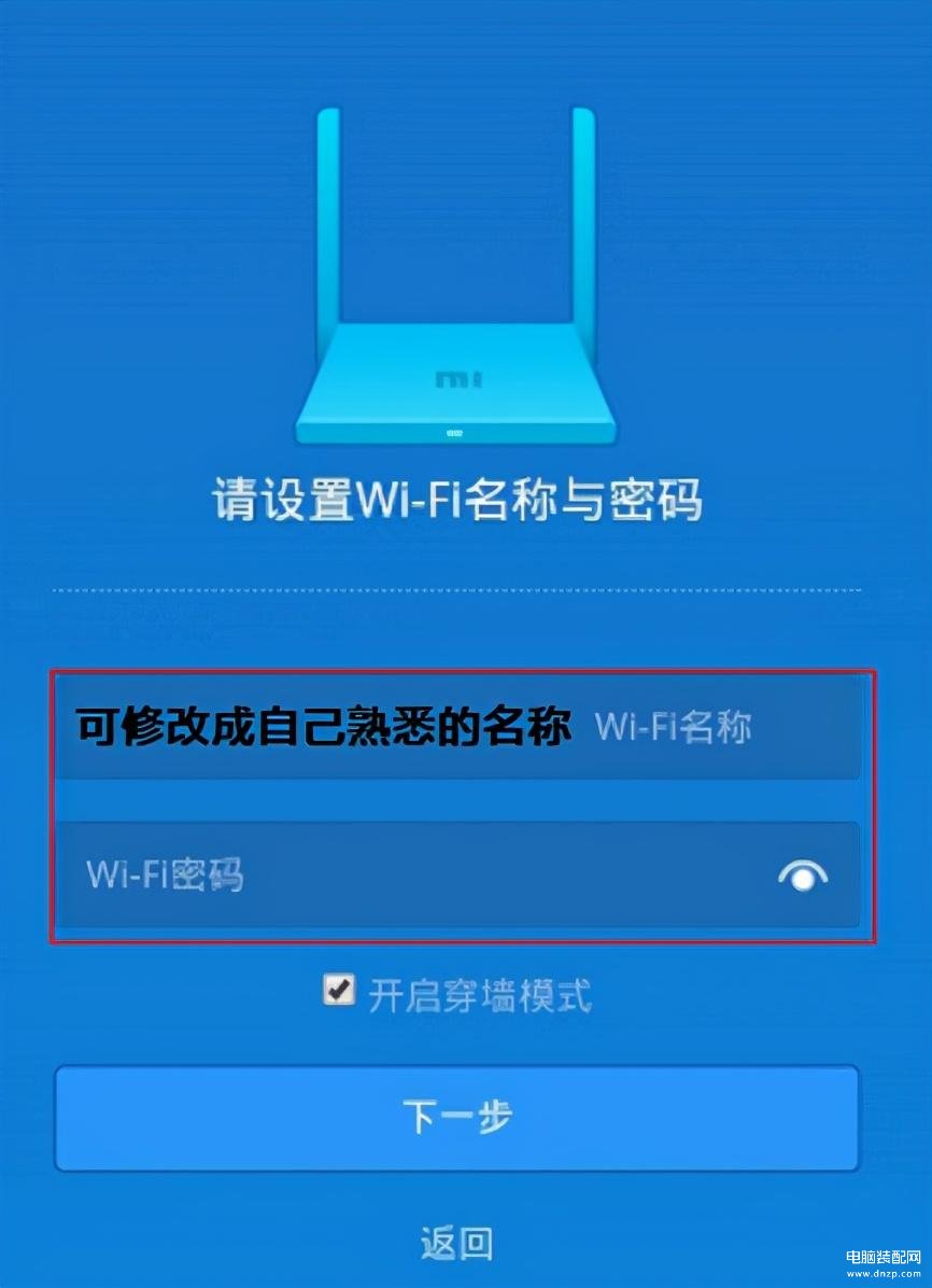 4、设置完路由器wifi名称和密码后,点击下一步。