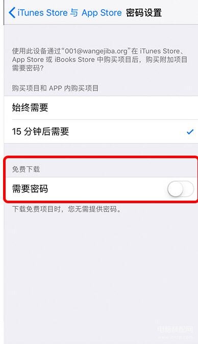操作步骤:“设置”——“iTunes Store与App Store”——“密码设置”——点击“15分钟后需要