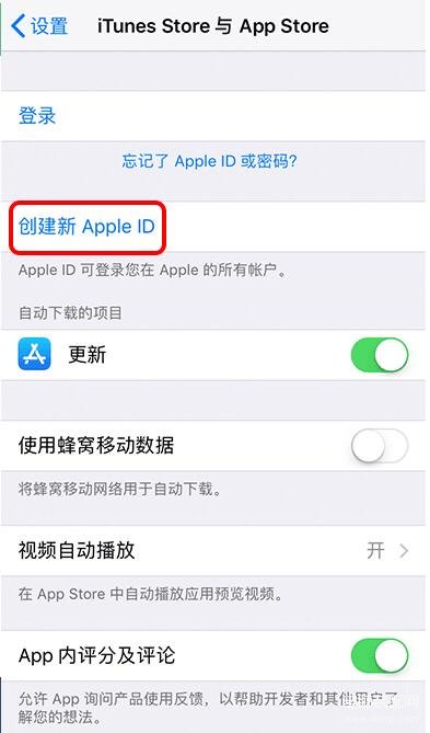 操作步骤:点击设置——点击iTunes Store与App Store——点击创建新Apple ID