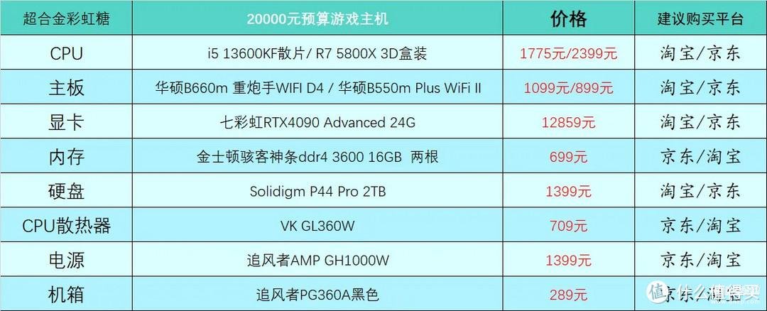 CPU和显卡相对来说都涉及范围更广一些,CPU只要跟得上主流选择,基本上就差不多了,高预算游戏主机可以适当再选择性能更强的CPU