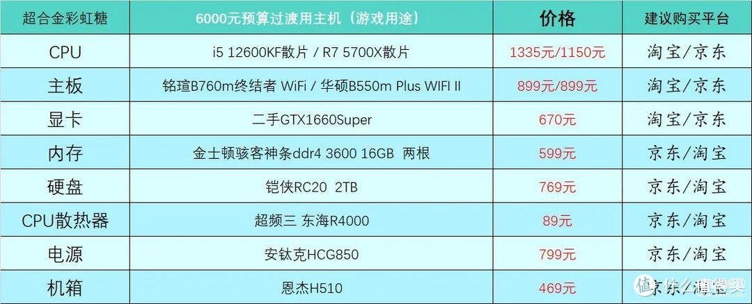 当然你们也可以考虑上i5 12400F/R5 5600+1650Super,然后以后换高端显卡这种思路。