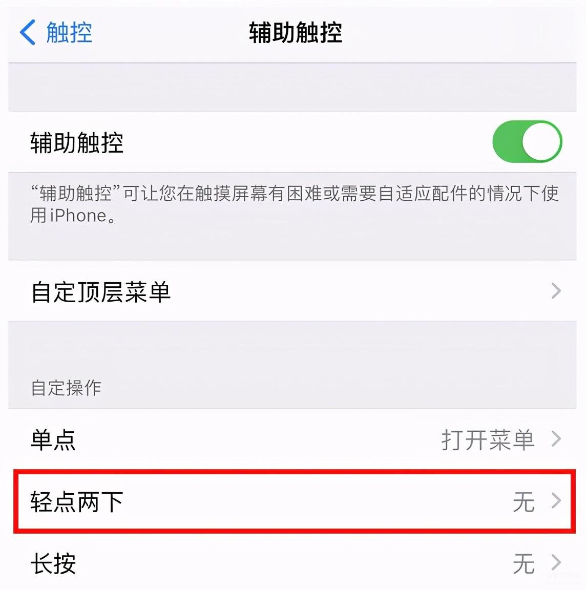 7、开启自定操作截屏,可在“辅助触控”中,选择“轻点两下”。