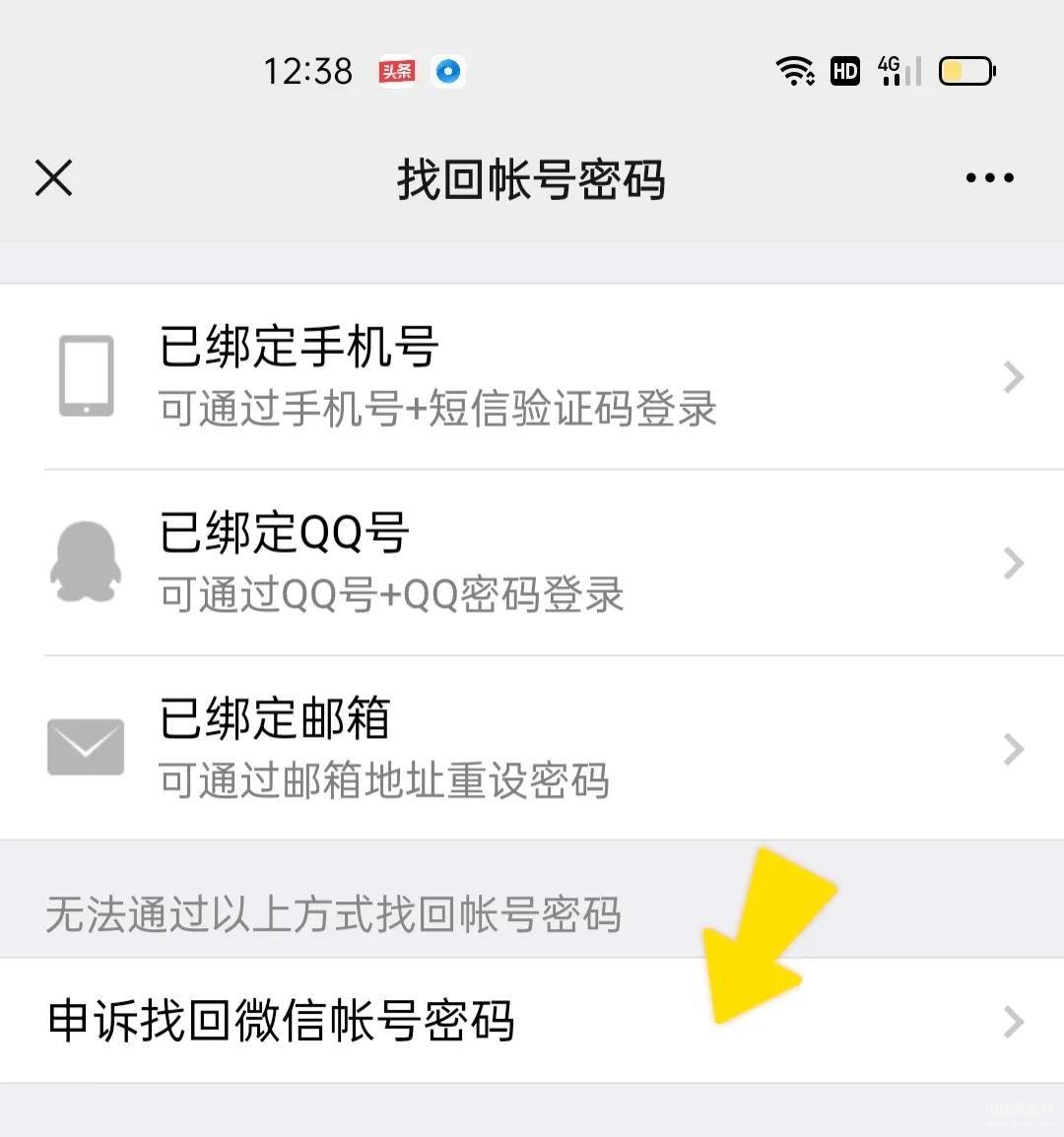 如果以上3种途径都没有,那就需要点击申诉找回微信账号密码