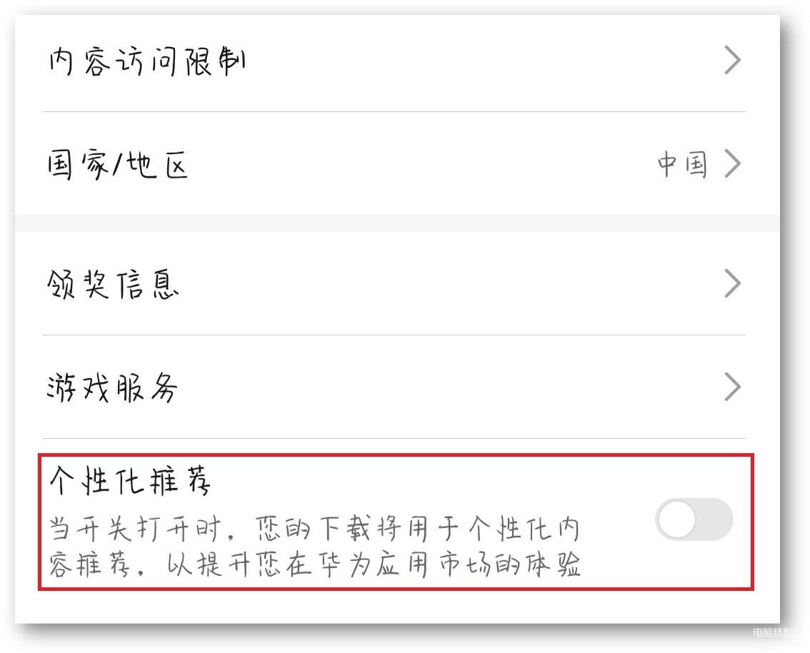 接着滑动到最底部,将下面的【个性化推荐】给关掉,以后我们就不会再收到手机应用商店的广告推送信息了。