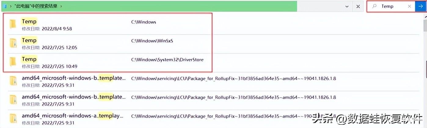 Temp文件夹存放的是电脑临时存储文件,是可以直接删除的。首先进入此电脑,在右上角的搜索框输入“Temp”,或者快捷键Ctrl+F输入“Temp”快速查找。