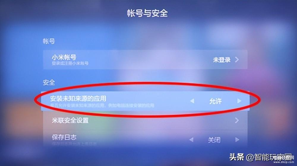 步骤二:进入你的电视盒子的系统设置页面,每个品牌不太一样,具体都差不多,找到安全性选择项中设定“允许安装未知来源运用”;
