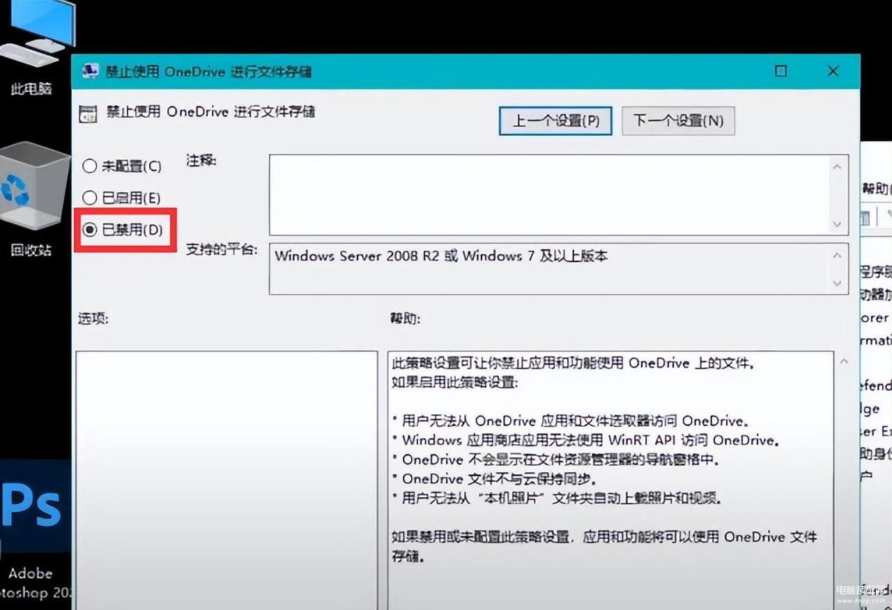 鼠标左键双击OneDrive选项,然后在窗口右侧设置选项栏中找到“禁止使用OneDrive进行文件存储”。