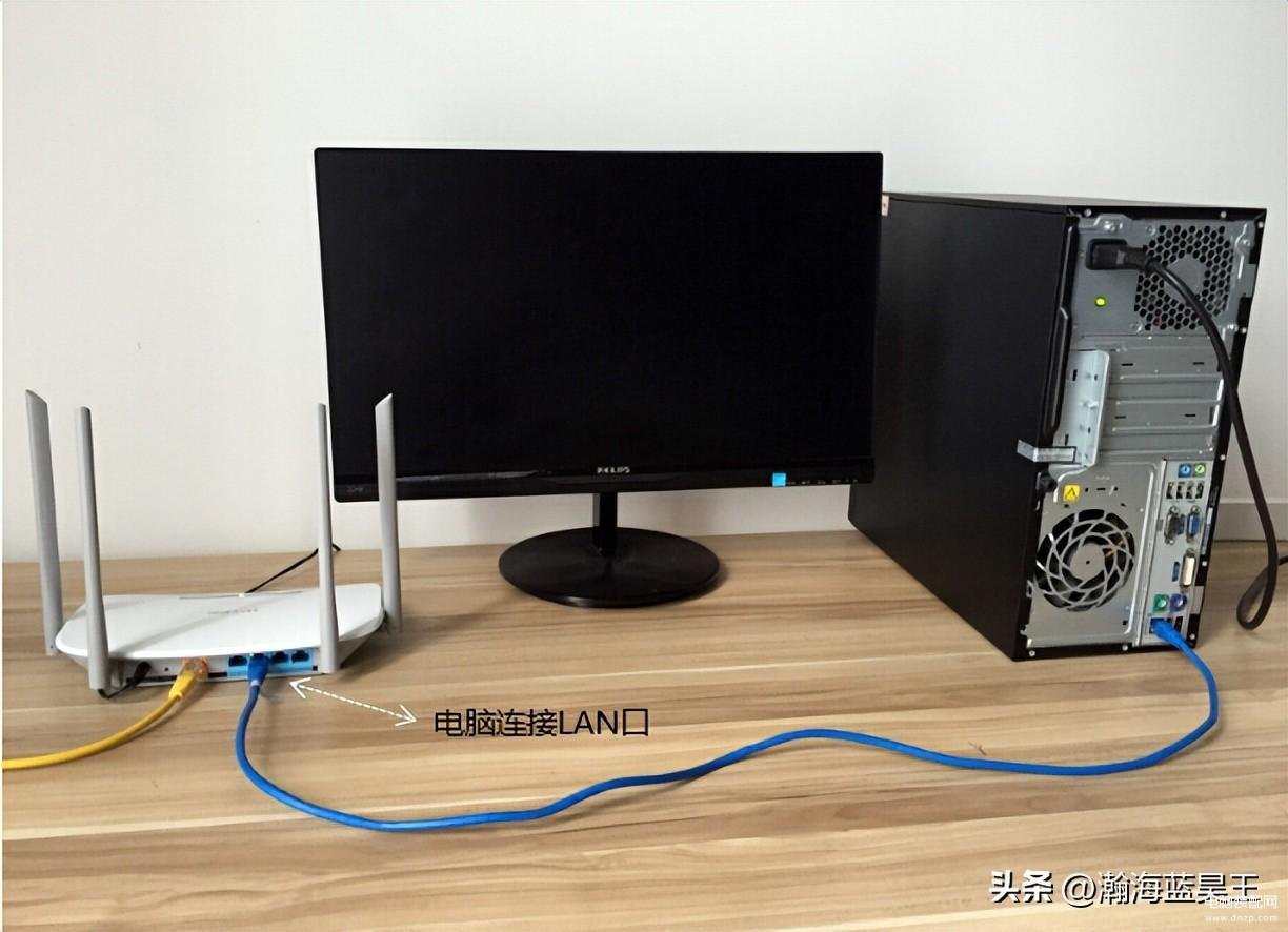 (2)电脑连接:使用网线将电脑与路由器的任意一个LAN口连接起来;易展路由产品支持接口盲插,电脑连接任意接口即可。若连接电脑的LAN口指示灯不亮,请确认网线插接牢固或者更换一条网线。如下图: