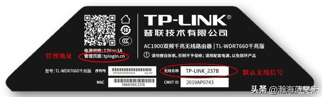 在路由器的底部标贴上查看路由器出厂的无线信号名称以及管理地址。