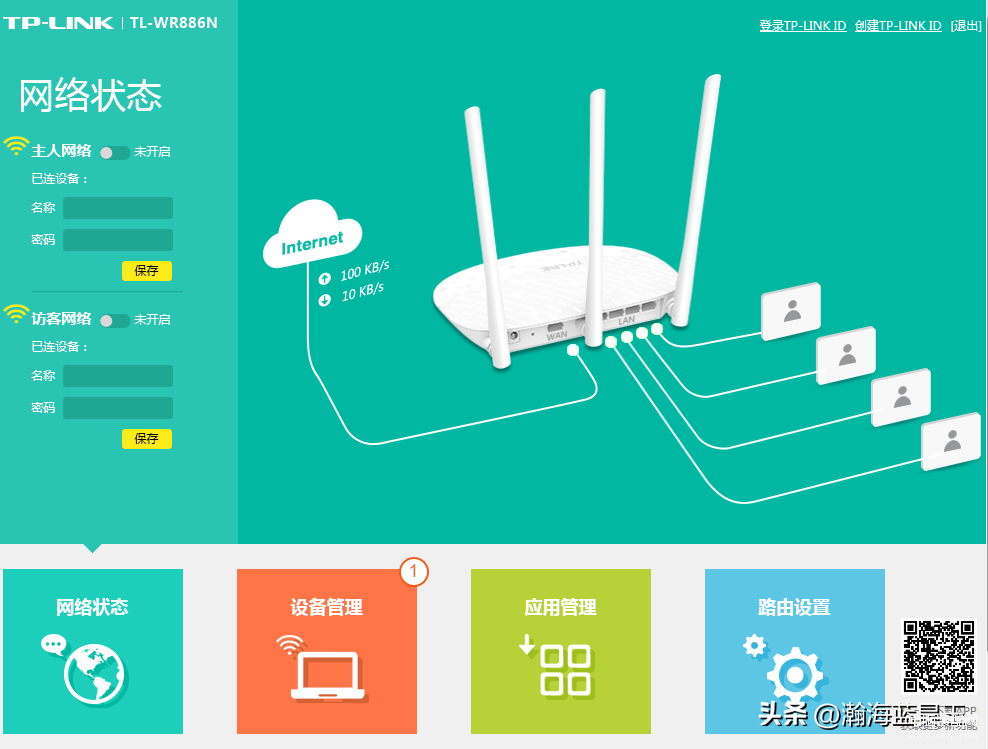 成功登录路由器管理界面,在管理界面,您可以查看无线密码、设置宽带连接以及网速限制、WDS桥接等一系列功能应用。