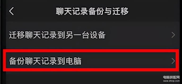 刚才我们在选择聊天记录迁移的时候还有一个选项,那就是“备份聊天记录到电脑”。