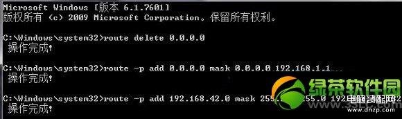 第二步、route -p add 0.0.0.0 mask 0.0.0.0 mask 192.168.1.1 ::添加0.0.0.0网络路由,这个是缺省时路由用192.168.1.1,加上-p的目的是设为静态(永久)路由,防止下次重起时配置消失。