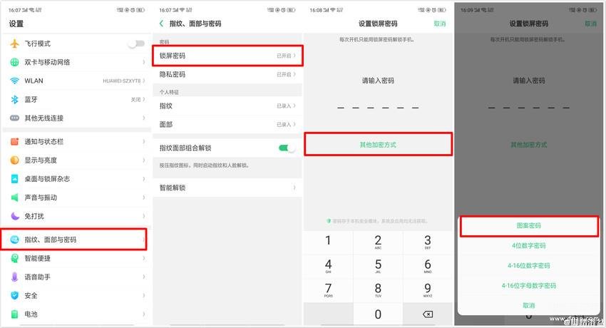 设置路径:『设置』-『指纹、面部与密码』-『锁屏密码』-【其他加密方式】