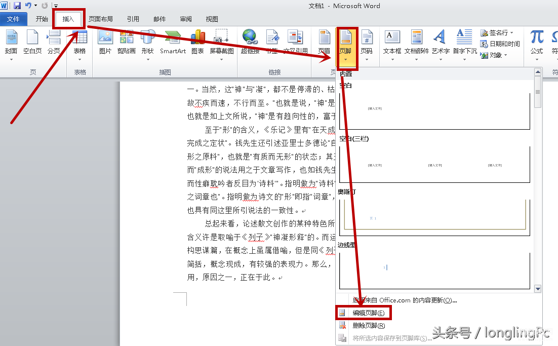 接下来切换到【插入】选项卡,点【页脚】--“页脚”--编辑页脚
