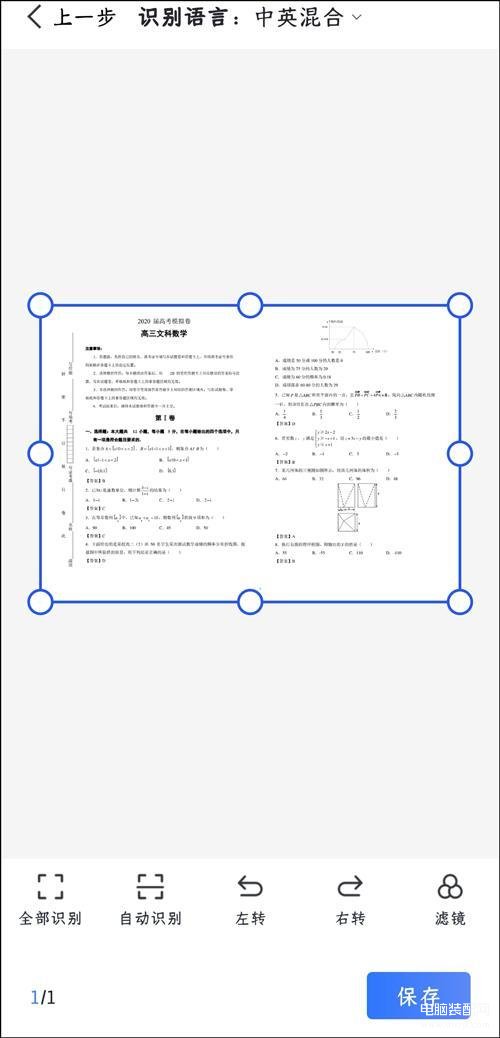 第四步:预览界面,点击和拖拽蓝色边框,调整框选图片的范围,点击右下角“保存”;