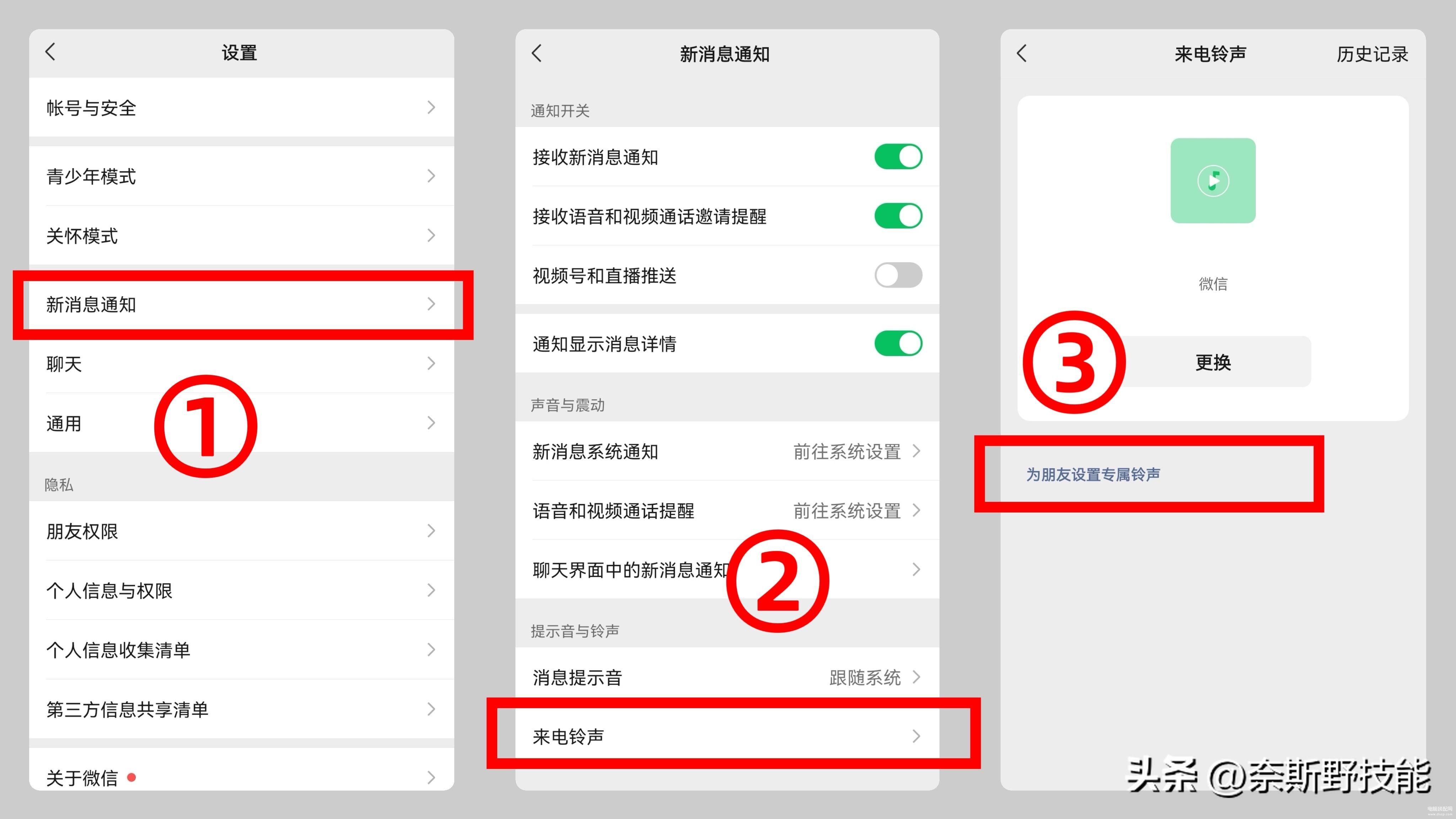 打开微信设置——新消息通知——来电铃声——为朋友设置专属铃声