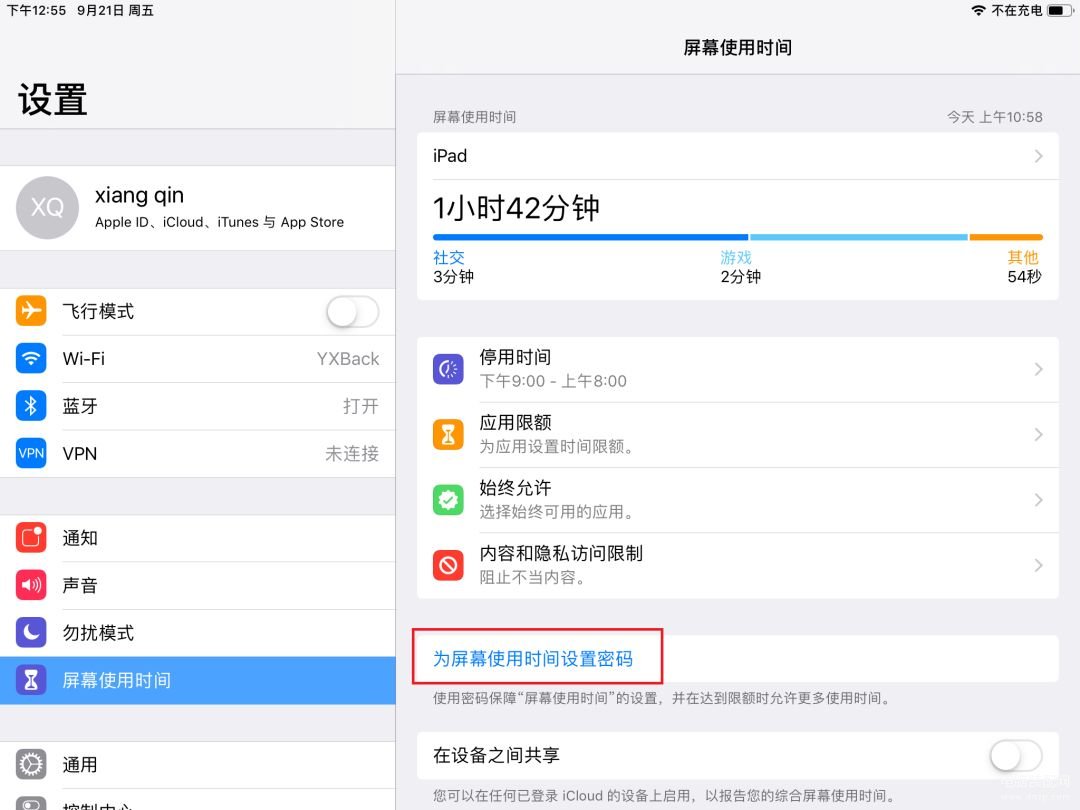 如果你觉得配置家人共享有点复杂,可以只在孩子iPad上设置使用时间统计和限制功能。
