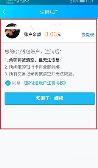 第五步进行注销支付账户,然后重新实名认证,就修改了qq实名注册信息,需要注意的是注销支付账户和注销qq账号不一样,注销支付账户,仅仅注销了支付功能,账号还在,如下图所示: