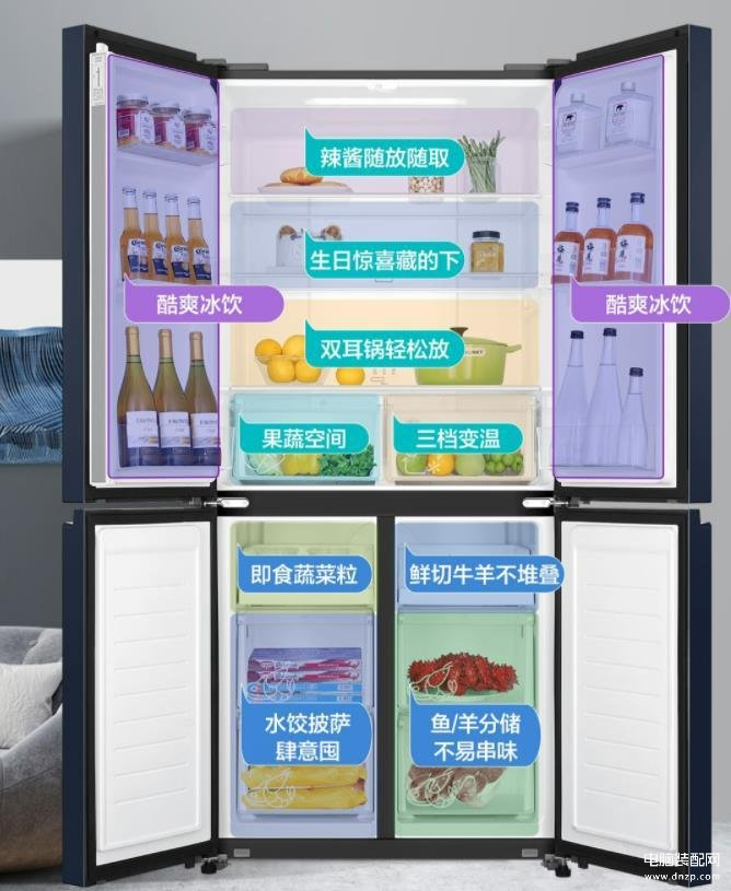 冰箱的布局和类型也是很重要的。家用来说,一般以双门电冰箱、三门电冰箱和四门电冰箱。还有对开门和十字门的选择,各有各的优点。像十字门冰箱还有变温区或者干湿分储区,给我们提供了更多的冷藏选择,但是价格也更贵一点,根据自己的需求选择就好。