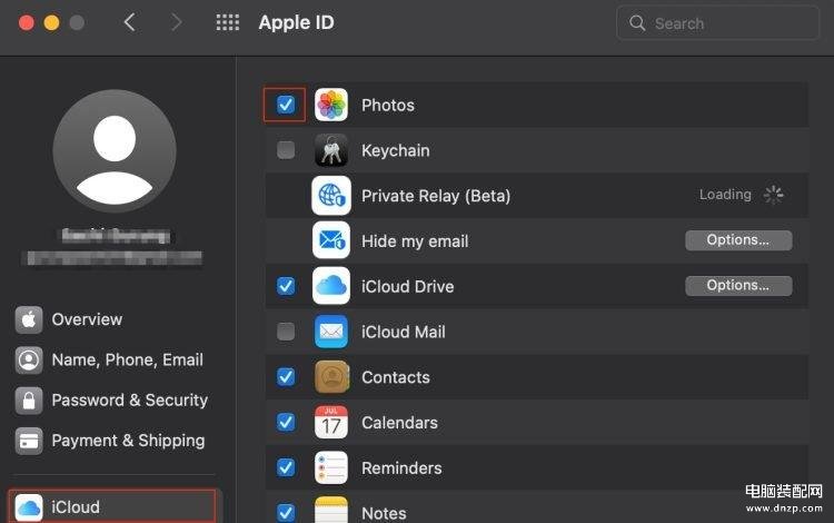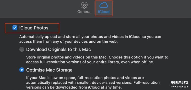 5、选中 iCloud 照片复选框。