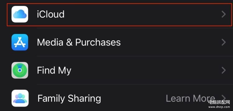 3、选择 iCloud 选项。