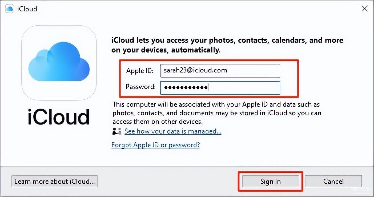 2、登录您的 iCloud 帐户。