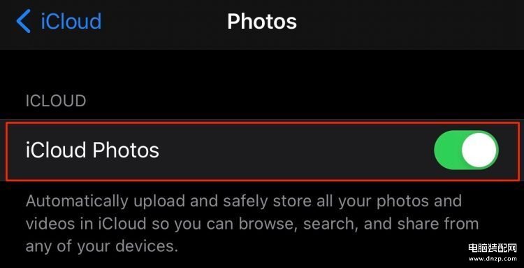 5、最后,启用 iCloud 照片的切换。
