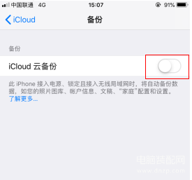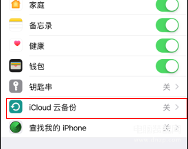 六、最后将”iCloud云备份“一栏的开关开启即可,如图所示。