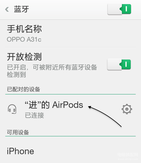 当安卓手机与 AirPods 连接配对成功后,可以看到已连接,如图所示。