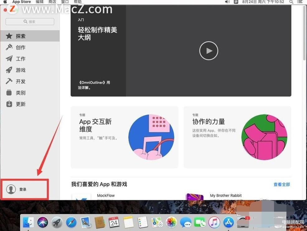 6.退出后,可以看到App Store左下角的用户名称已经没有了,变成了登录选项。