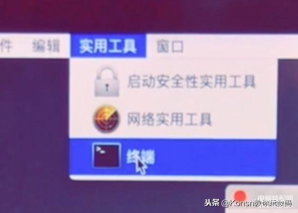 3、进入之后,在菜单栏上的「实用工具」这找到>“终端”,