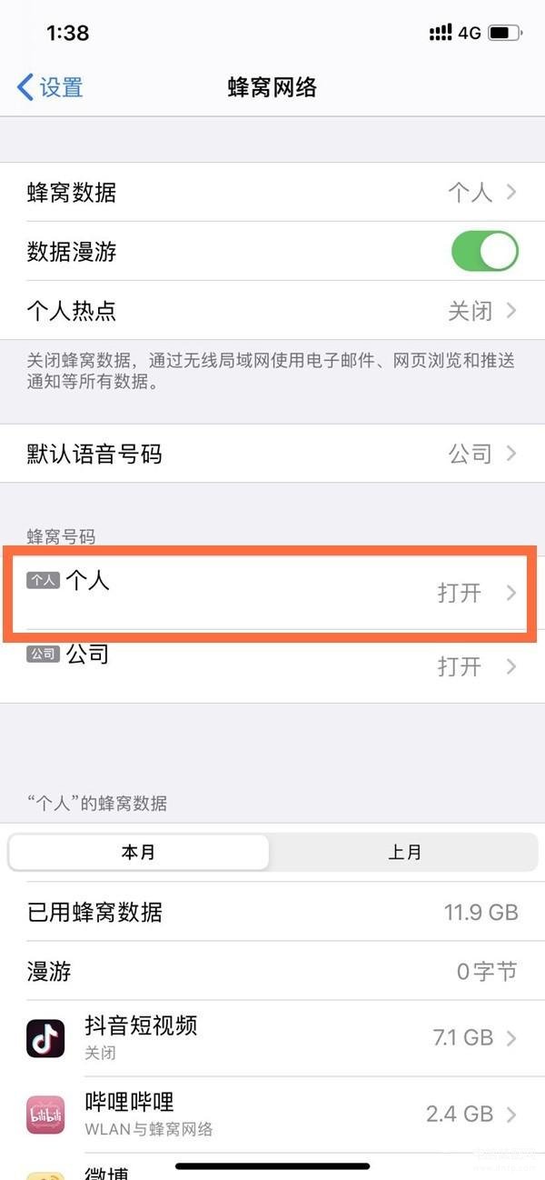 2、点击需要设置的蜂窝号码。