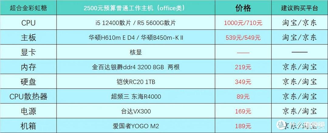 2500元预算的普通工作主机