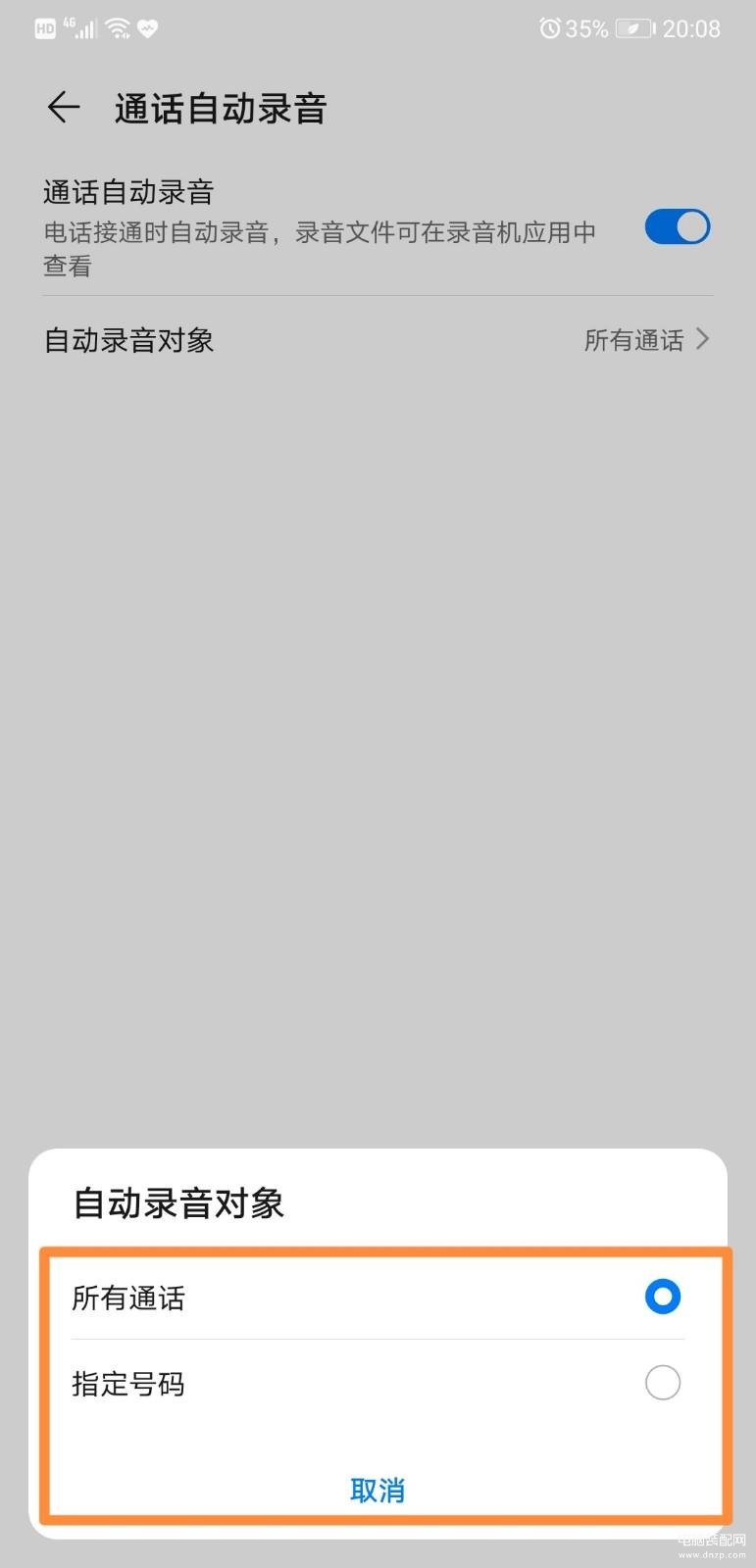 3.你可以设置“所有通话”录音,或者设置“指定号码”录音。