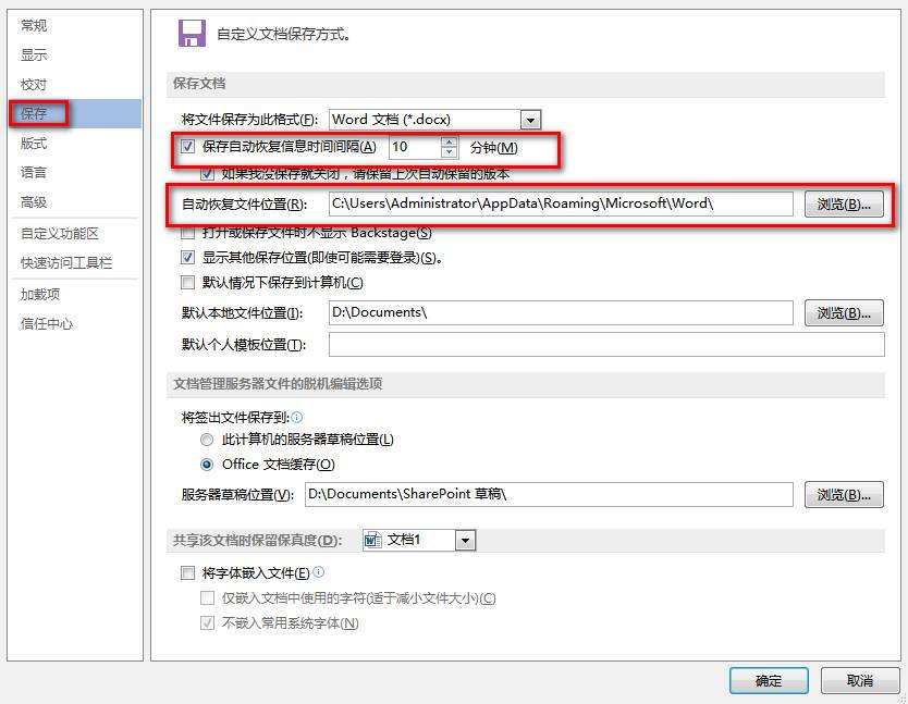 同步工具已经架设完成,那么我们要如何及时保存我们的文件呢?下面以Word 2013为例,点击左上角的“文件”,选择左边栏中的“选项”,把设置合适的保存时间的间隔,即可。此外,还可以把自动恢复文件的位置设置到同步文件夹中哦。当然,是不是按一下“Ctrl+S”更是王道。