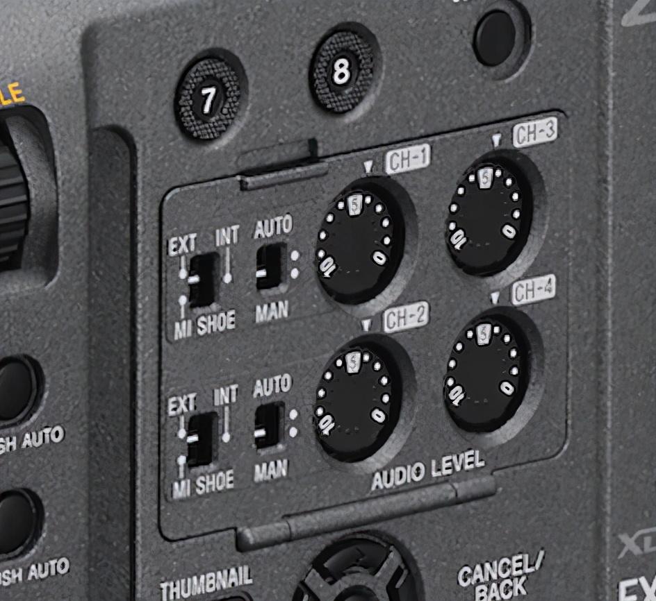 FX9的4声道音频有各自独立的控制钮,但FX6只能提供2声道的实体键控制。另外,切换机内麦克风、外置麦克风和MI多功能热靴音源的切换键也取消了,以上操作必须进入菜单调节。