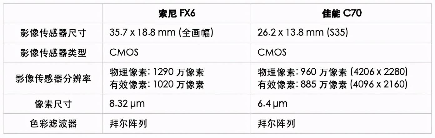 现在让我们看看FX6和C70影像传感器方面的差异点:
