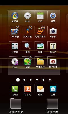 进入菜单界面,点击HOME键左侧的菜单按钮可对系统图标进行编辑,程序图标右上角带有减号标志的可直接点击卸载,同时我们还可以用文件夹对程序进行分类。